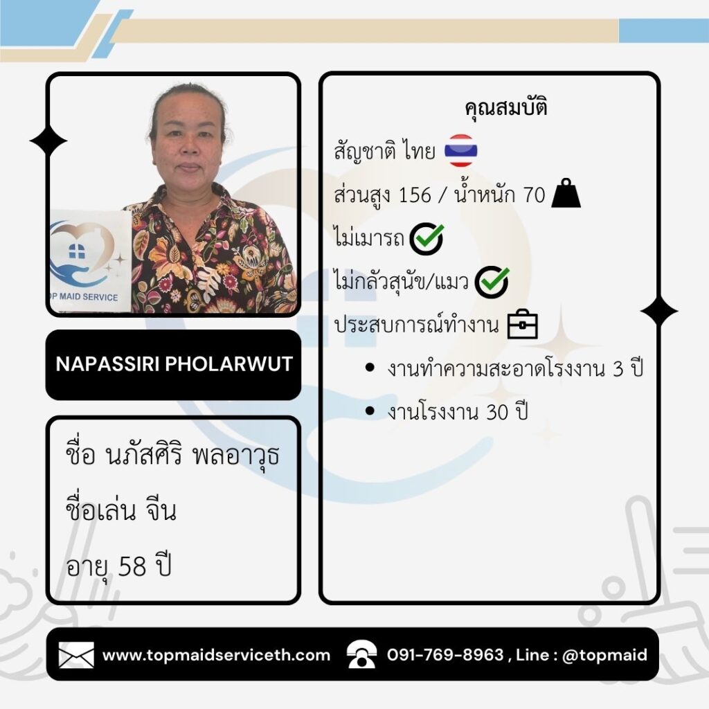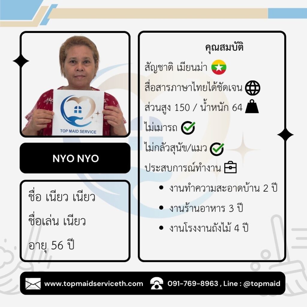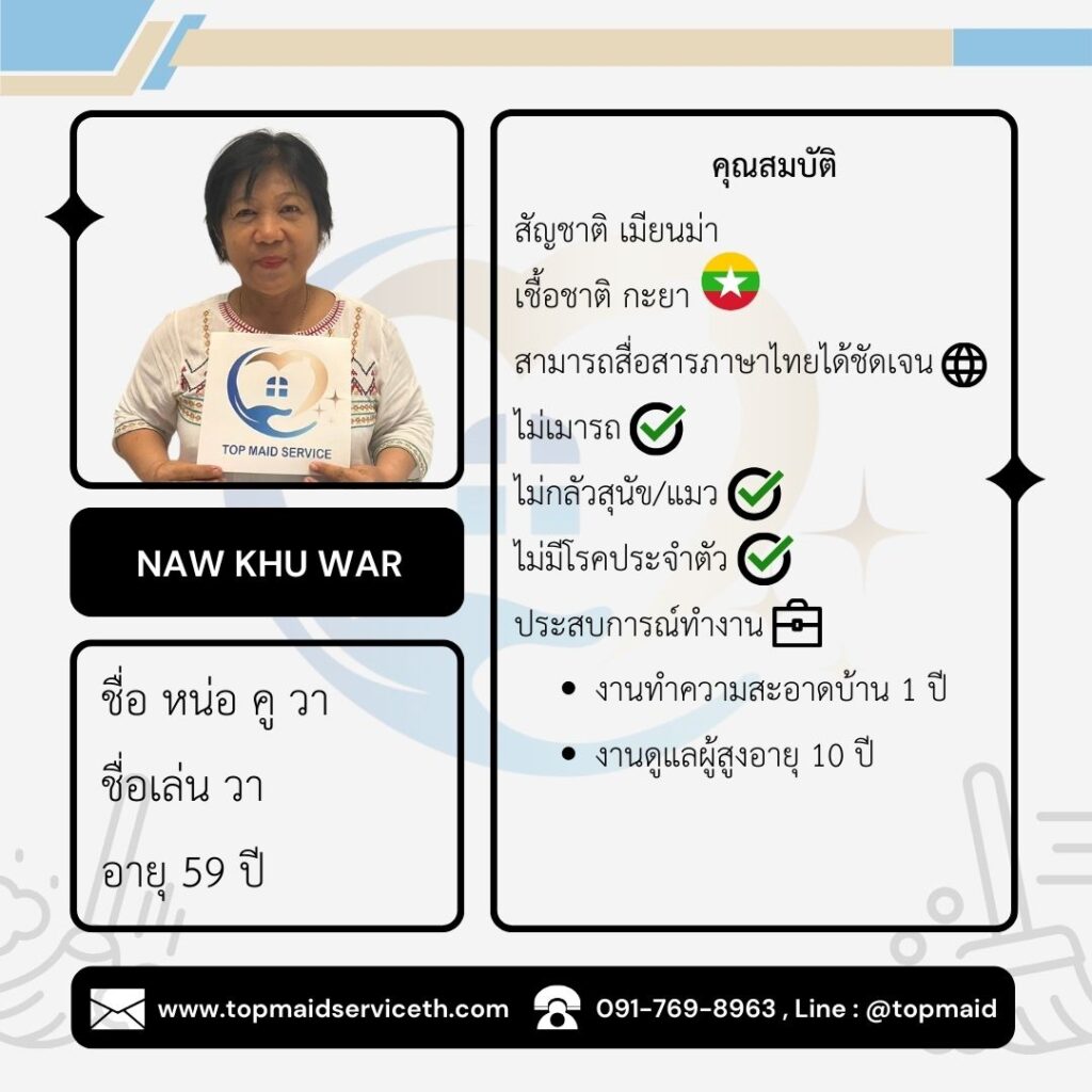บริการจัดหาแม่บ้าน พี่เลี้ยงเด็ก ดูแลผู้สูงอายุ - Top Maid Service