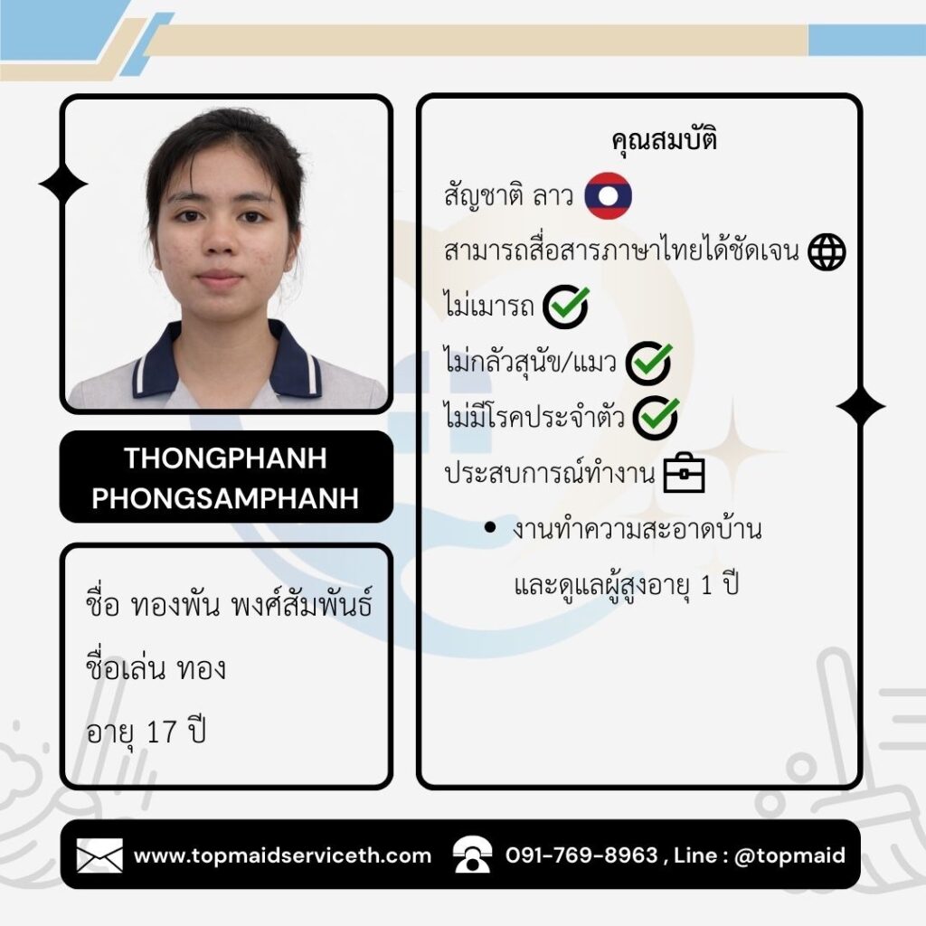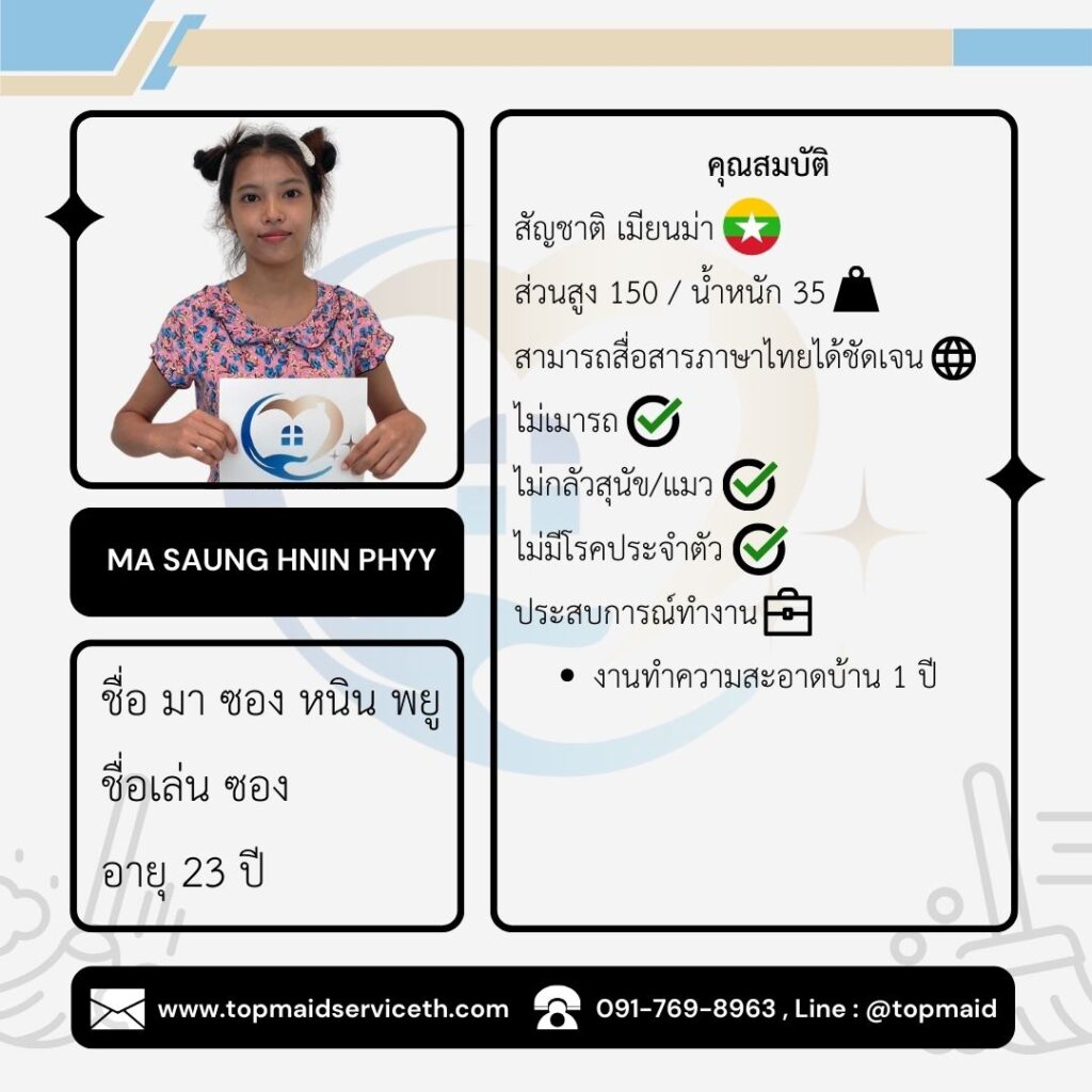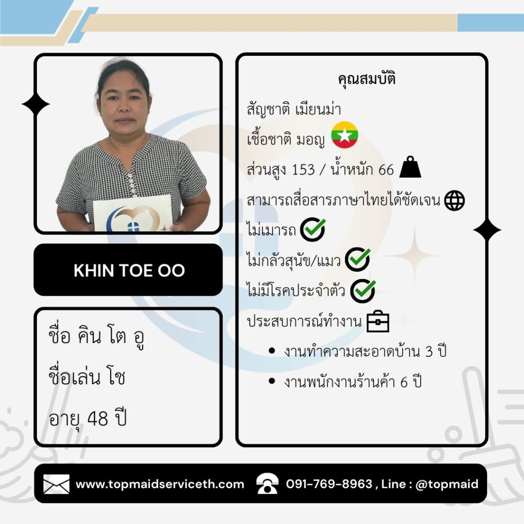 บริการจัดหาแม่บ้าน พี่เลี้ยงเด็ก ดูแลผู้สูงอายุ - Top Maid Service